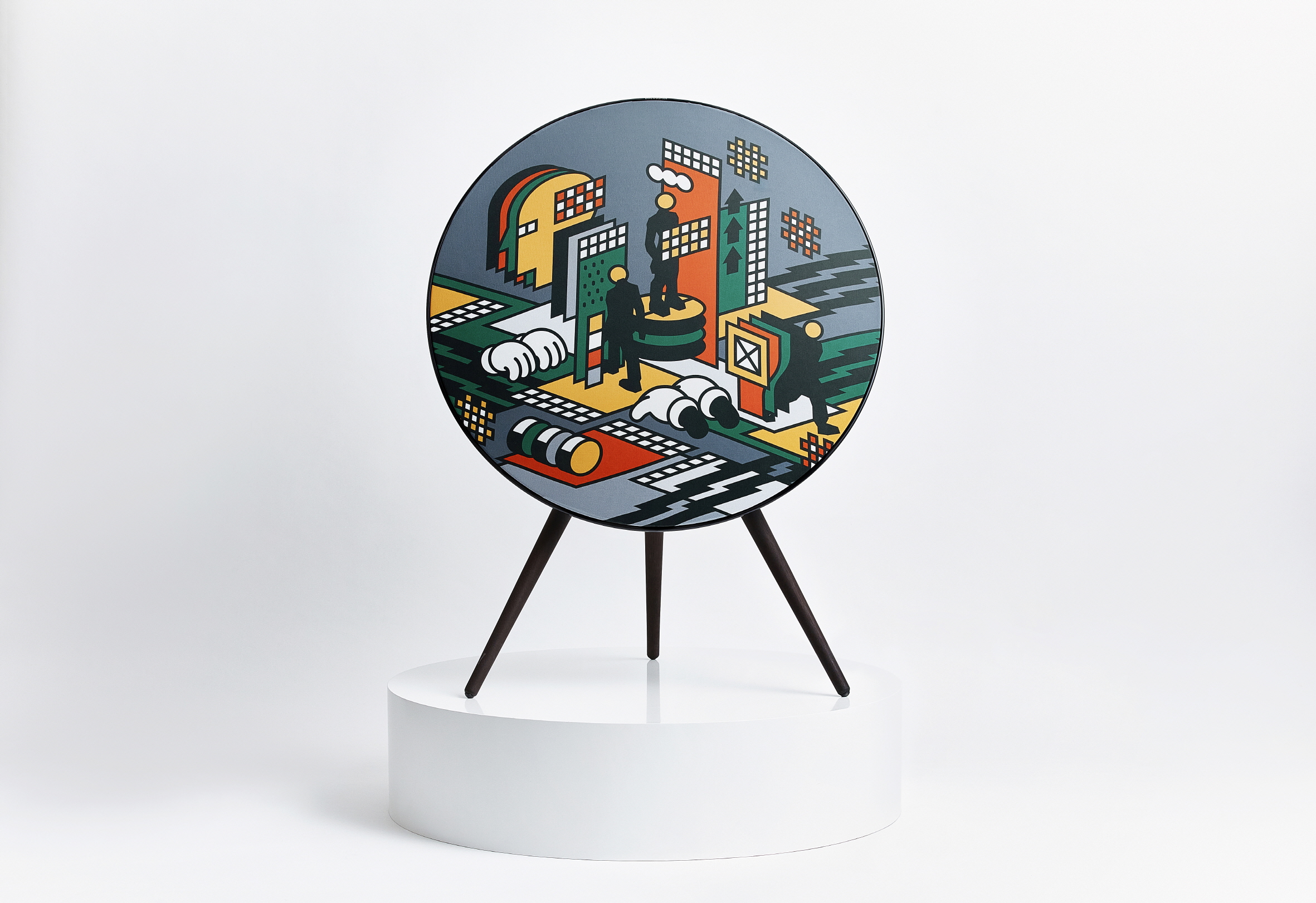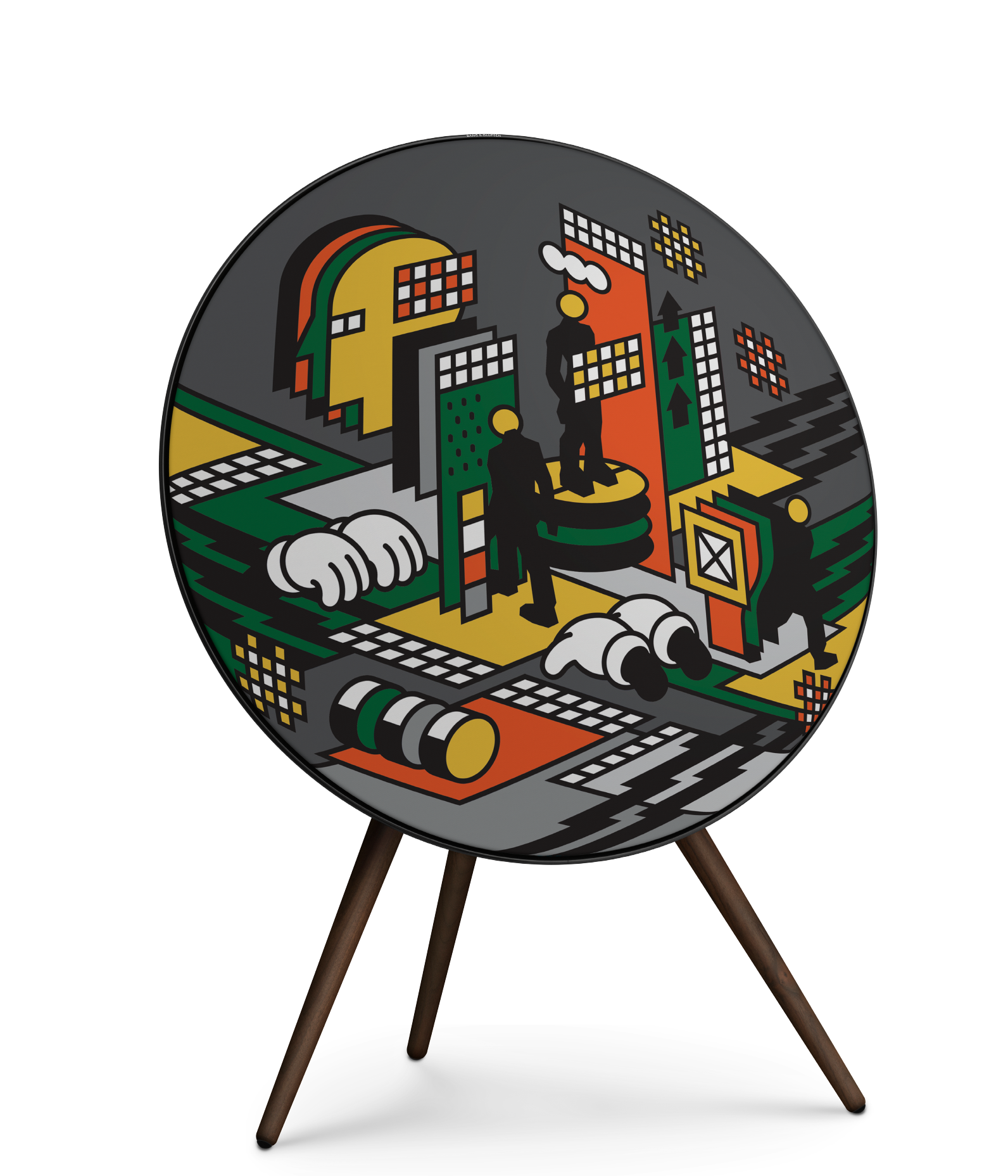 이번 프로젝트에 참가한 한국 아티스트는 바로 그래픽 아티스트 그라플렉스다. 그라플렉스는 그래픽 기반 일러스트, 조각, 아트토이 등 다양한 영역에서 활동하고 있는 아티스트로 간결한 색채만으로 개성있는 시각적 효과를 만들어내기로 유명하다. 그라플렉스의 손길로 완성된 베오플레이 A9의 아트워크 ‘A DAY’는 ‘음악과 함께하는 일상’에 영감을 받은 것. 스피커를 덮고 있는 원형의 패브릭에는 ‘일상에서 음악이 어떤 형태로든 존재하며, 그로 인해 일상에 작은 여유와 휴식을 제공한다’는 의미를 담은 그라플렉스의 일러스트가 새겨졌다.