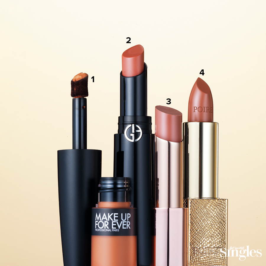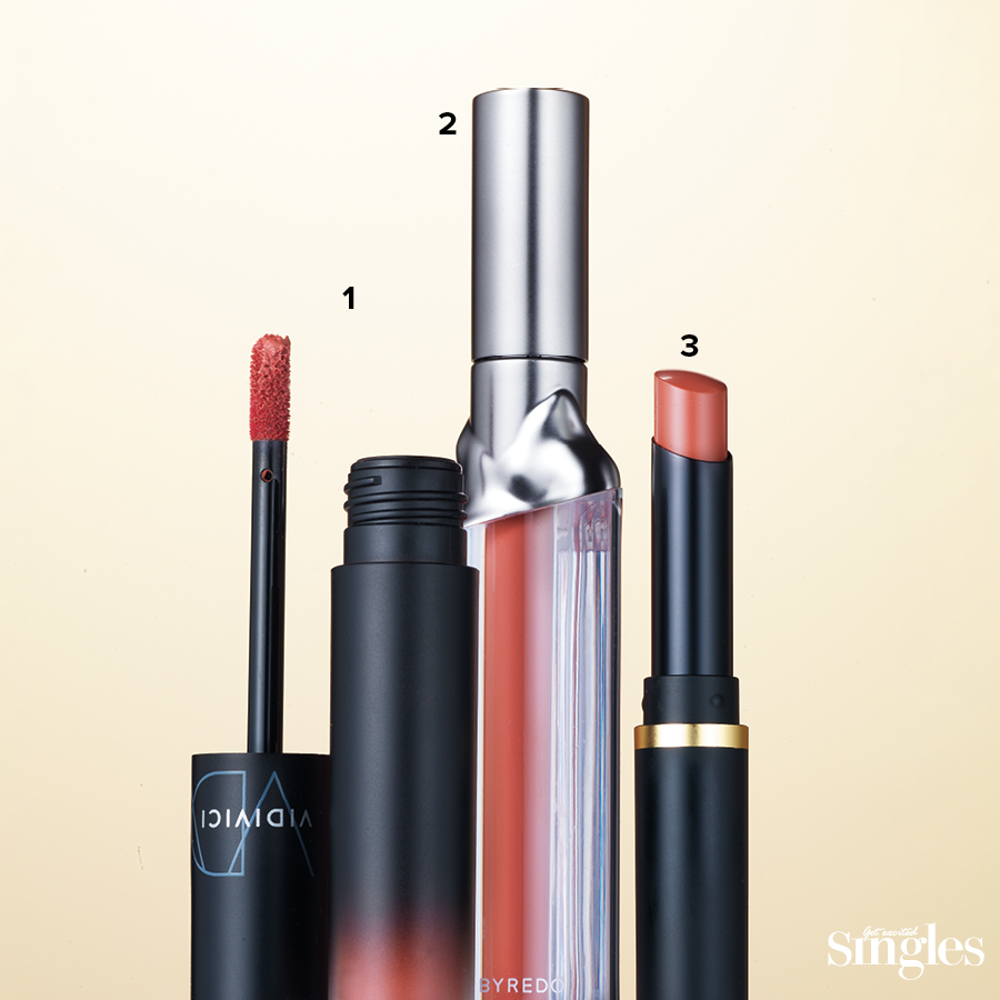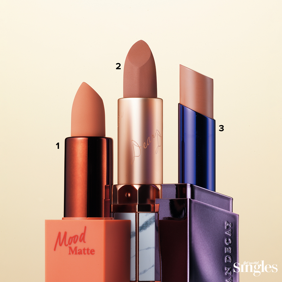 1 에뛰드하우스 무드 매트 립스틱 02 버터앤 버터 코럴빛의 베이지 컬러가 따뜻한 생기를 불어넣는다. 3.5g 1만2000원. 2 디어달리아립 파라다이스 에포트리스 매트 립스틱 M101 베일리 식물성 보습 성분을 함유해 입술이 오래도록 편안하다. 3.2g 2만8000원. 3 어반디케이 바이스 립스틱 준 글룸 쫀쫀한 발림성과 맑은 글로우 피니시가 특징. 3.4g 3만2000원.