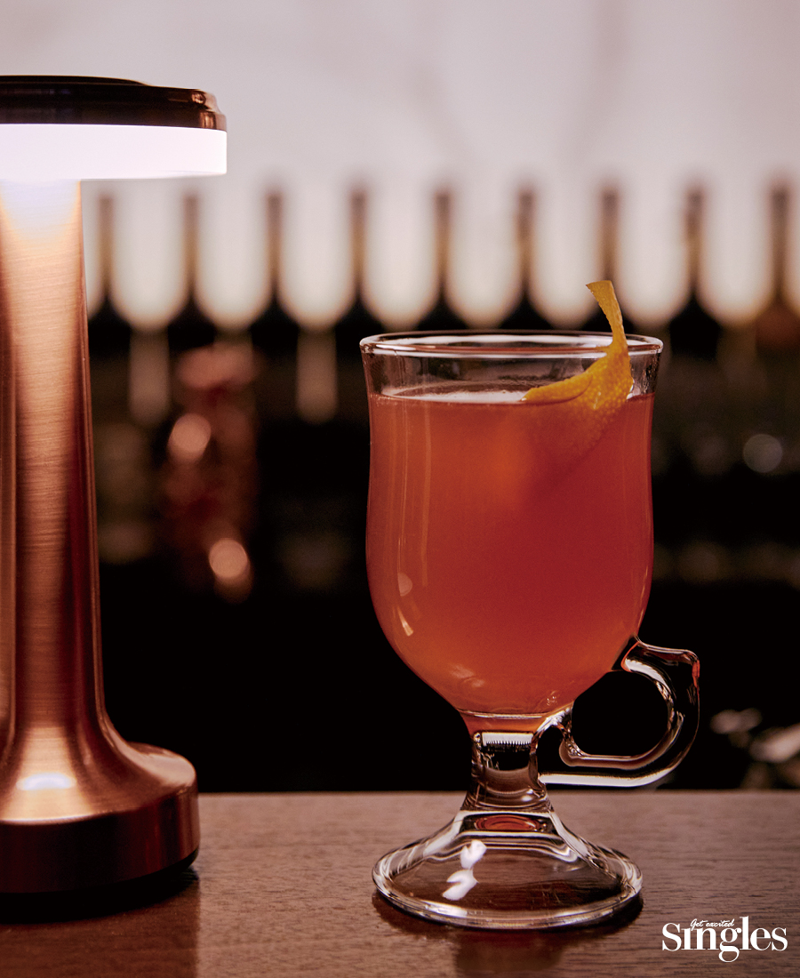 “인센스 하나로 칵테일을 쉽고 간단하게 완성해보세요. 천연 나무 인센스인 팔로산토는 마음을 편안하게 해주는 효과가 있죠. 여기에 오렌지 껍질을 하나 말아 넣으면 풍미가 더욱 살아나요.”