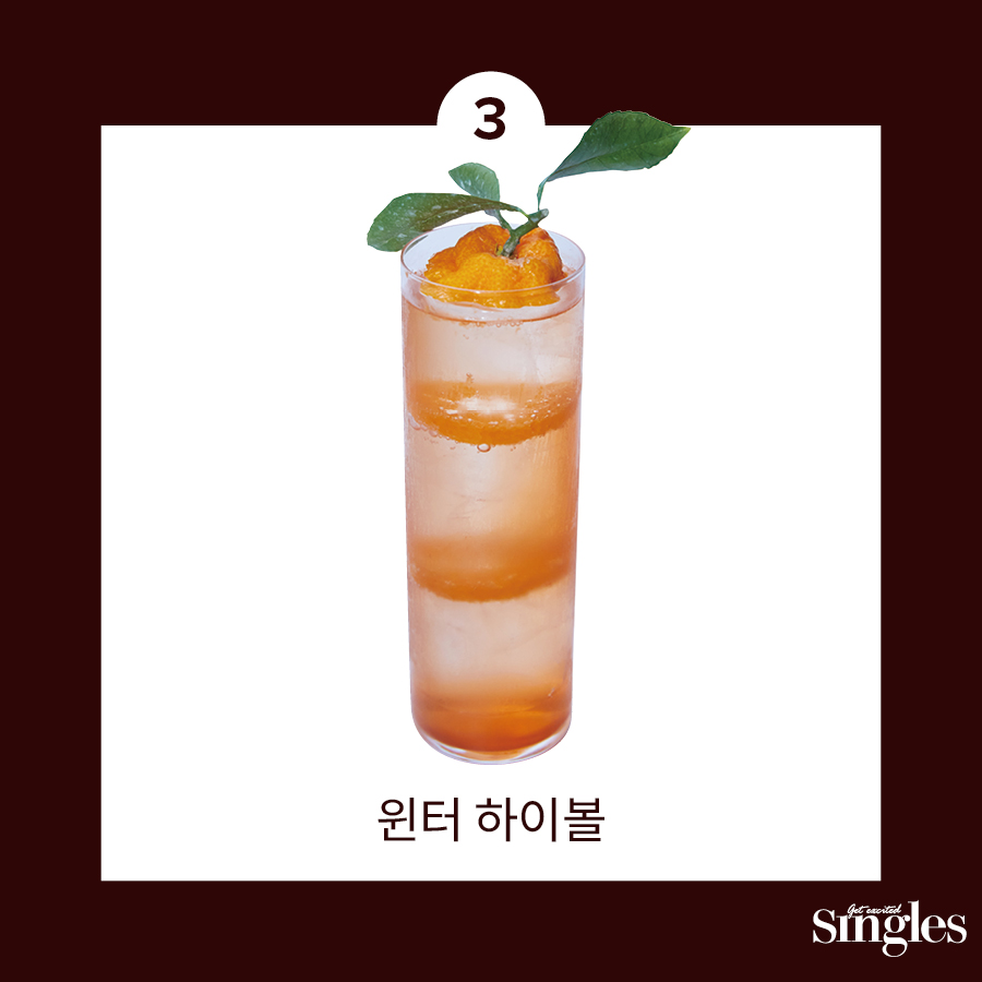“겨울은 감귤류 과일이 제철이죠. 보통 하이볼에는 레몬이나 라임을 넣는데, 한라봉, 레드향, 천혜향 등을 대신 사용하면 겨울만의 하이볼이 완성돼요. 이러한 시트러스 계열 과일의 껍질에는 에센셜 오일이 들어 있는데요. 껍질을 꾹 눌러 나온 오일을 손등에 뿌리면 칵테일을 마실 때마다 향도 함께 맡을 수 있어요. 탄산음료 또한 원하는 대로 바꾸면 됩니다.”