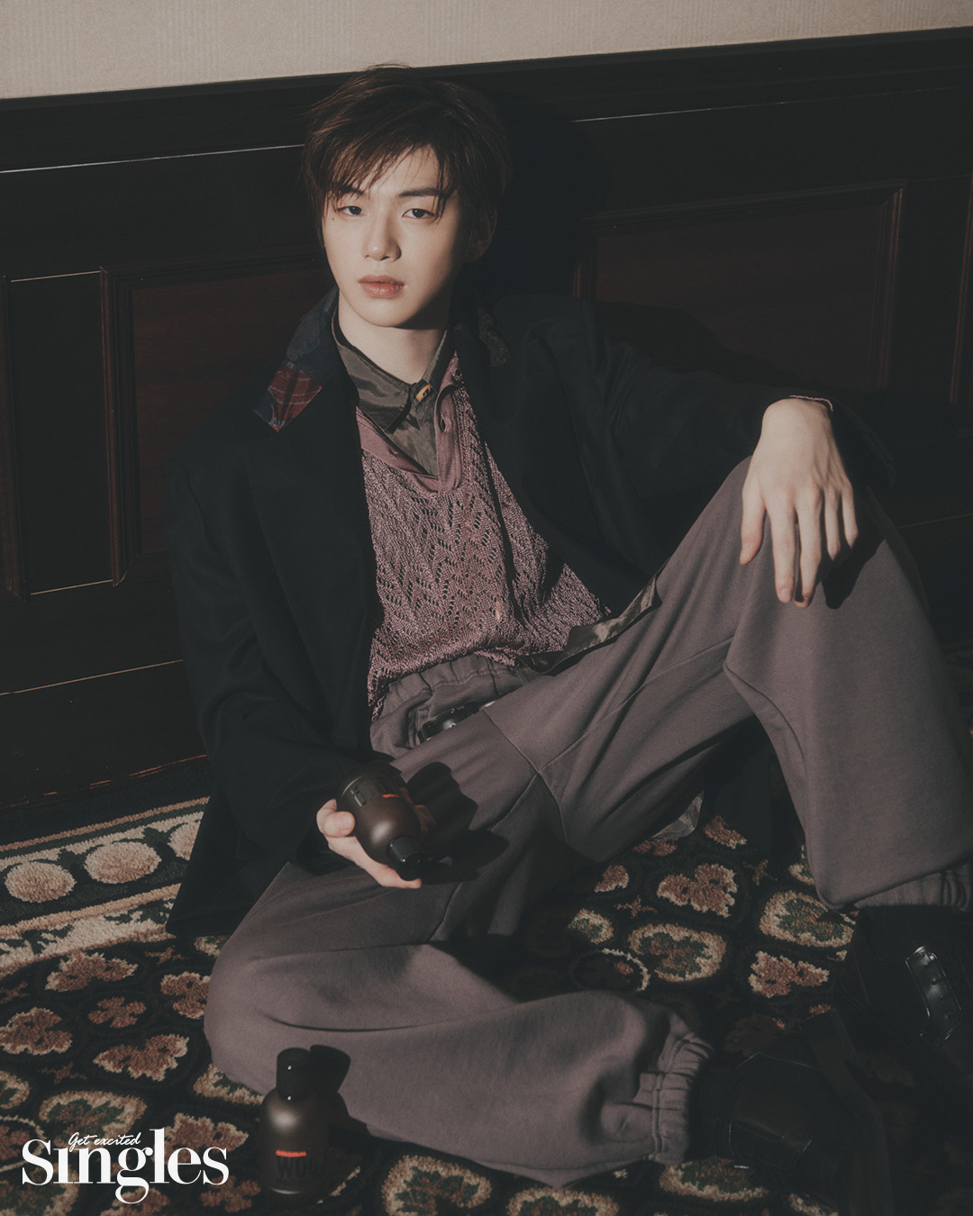 부드러운 바이올렛 잎에 카디멈의 스파이시함이 깃들었다. 강렬하고도 묵직한 여운을 남기기 위해 택한 향조는 전나무와 시더우드 그리고 베티버. 마지막은 앰버와 머스크의 만남으로 깊고 관능적인 향이 가득 느껴진다. 디스퀘어드2 오리지널 EDP 50ml 9만2000원. 블랙 재킷과 니트 팬츠 모두 마그리아노 by 무이, 슈즈는 스타일리스트 소장품.
