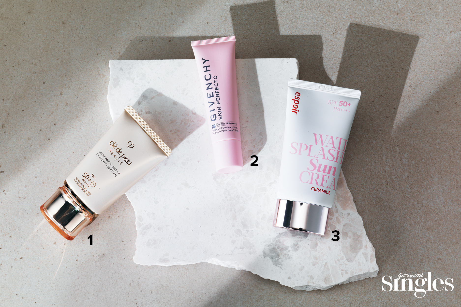 1 끌레드뽀 보떼 UV 프로텍티브 크림 N SPF 50+ PA++++ 바르는 순간 풍부한 수분감을 선사하는 아이템. 피부에 유익한 빛만 선택적으로 투과시켜 광노화를 효과적으로 예방한다. 50ml 16만원대. 2 지방시 뷰티 스킨 퍼펙토 래디언스 퍼펙팅 UV 플루이드 SPF 50+ PA++++ 풍부한 활성 성분을 함유한 비타민 블렌드 콤플렉스가 자외선으로 인한 피부 노화 징후를 예방한다. 묽은 로지 플루이드 텍스처가 산뜻하게 흡수되어 핑크빛 광채를 부여한다. 30ml 7만원대. 3 에스쁘아 워터 스플래쉬 선크림 세라마이드 SPF 50+ PA++++ 물방울이 터지듯 피부 속부터 강력하게 보습을 충전한다. 세라마이드, 펩타이드를 함유해 피부 보습 장벽을 보호하는 비건 선 제품. 60ml 2만2000원.