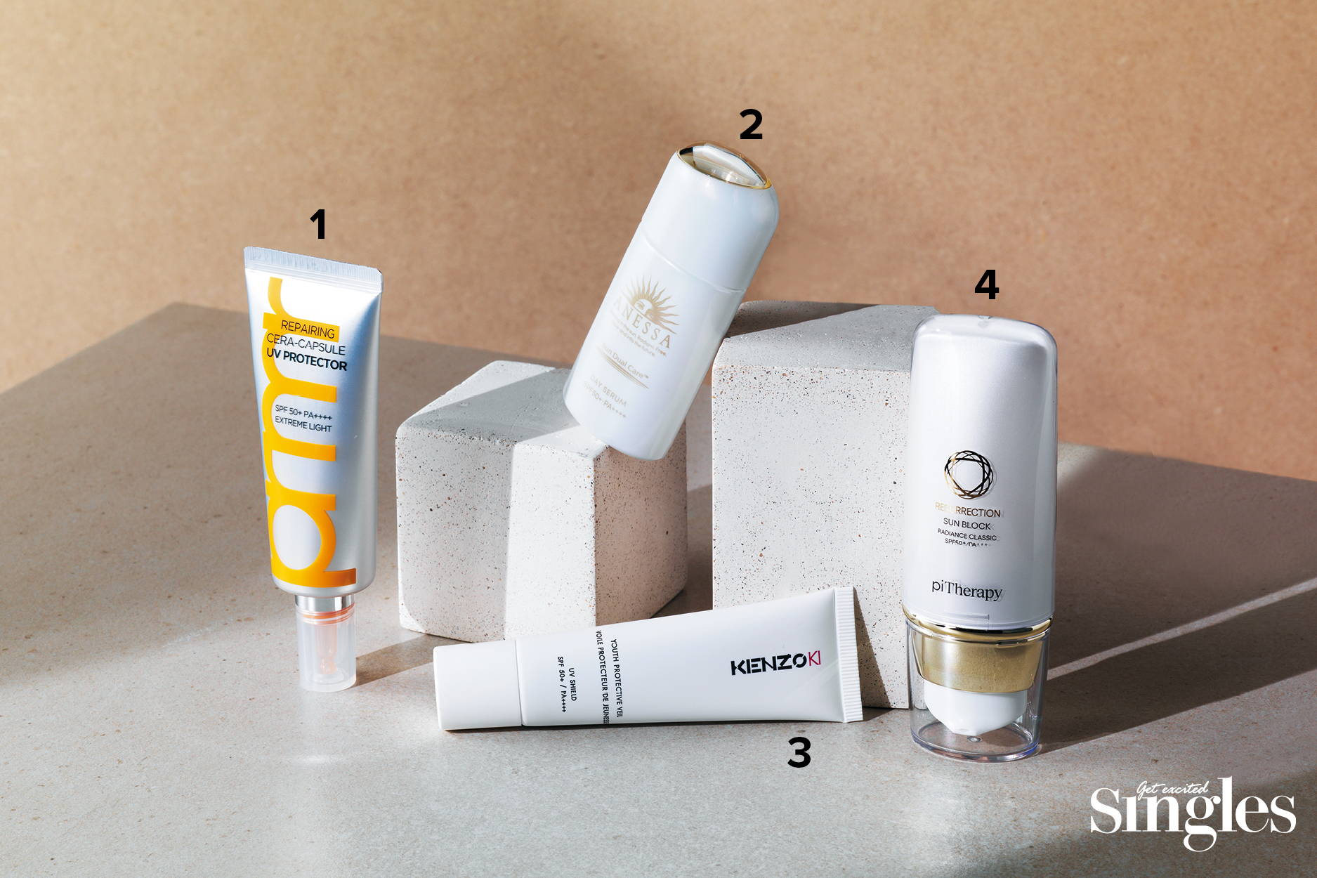 1 프리메라 리페어링 세라캡슐 UV 프로텍터 SPF 50+ PA++++ 브랜드 최초로 피부 지질 구조와 유사한 세라마이드 캡슐을 담아 손상된 피부 장벽의 회복을 돕는다. 40ml 3만4000원. 2 아넷사 데이 세럼 SPF 50+ PA++++ 혁신적인 선 듀얼 케어™ 테크놀로지가 적용되어 강력한 자외선 차단은 물론 탁월한 스킨케어 효과까지 누릴 수 있다. 30ml 4만4000원대. 3 겐조키 유스 플로우 유스 프로텍티브 베일 유브이 쉴드 SPF 50+ PA++++ 피부를 보호하는 연꽃 추출물과 탄력과 주름을 개선하는 자연 유래 당아욱 추출물이 탁월한 안티에이징 효과를 자랑한다. 30ml 8만6000원대. 4 파이테라피 레저렉션 선블록 라디앙스 클래식 SPF 50+ PA+++ 생크림 텍스처가 피부결 사이사이 스며든다. 독자적인 펩타이드가 결합된 레저렉션 퍼포먼스가 탄력을 높인다. 30ml 4만9000원.