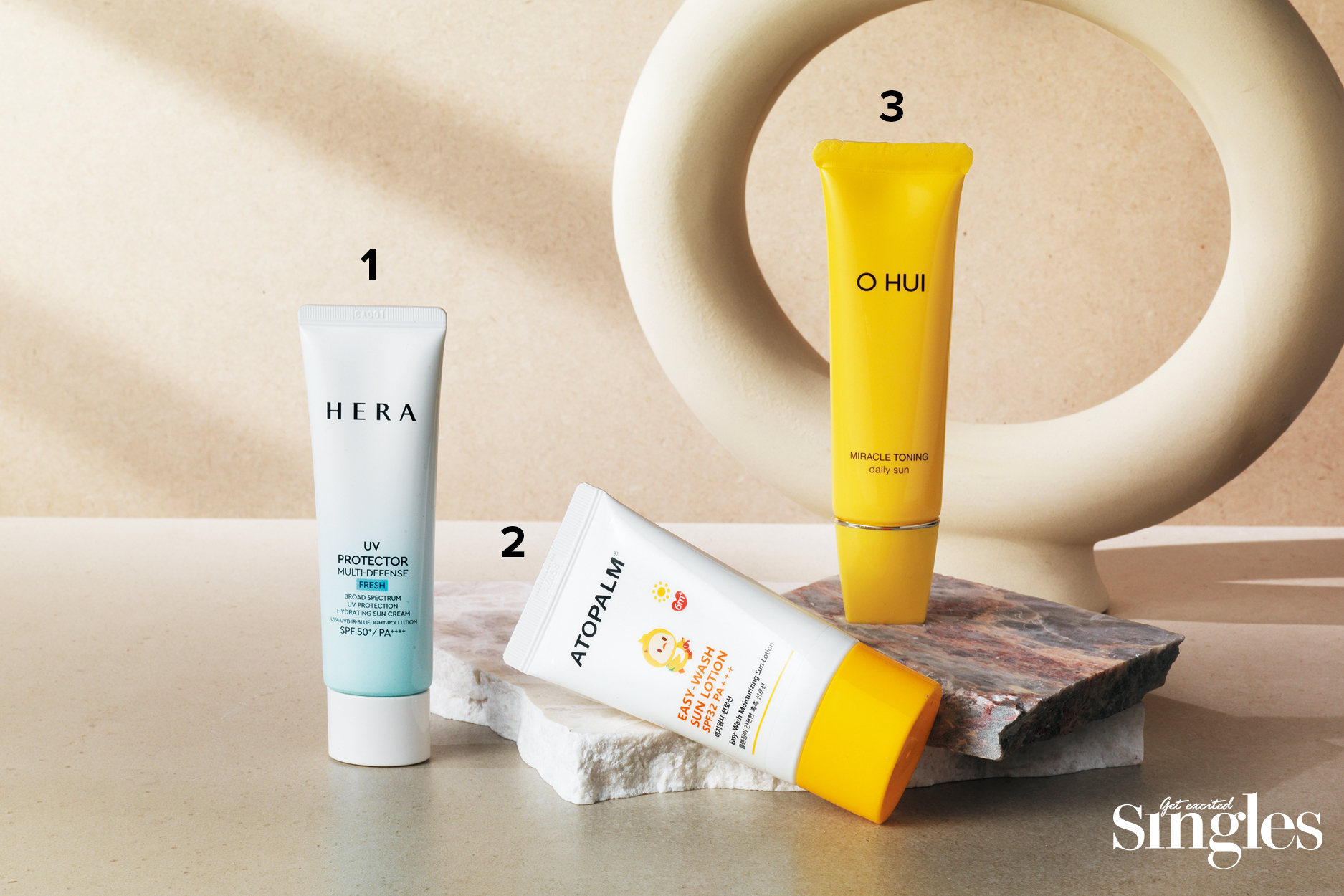 1 헤라 UV 프로텍터 멀티디펜스 프레쉬 SPF 50+ PA++++ 가볍고 촉촉한 수분 에센스 포뮬러가 피부에 얇고 균일하게 스며든다. 흡수력이 뛰어나 바른 직후에도 끈적임 없이 마무리된다. 50ml 4만5000원. 2 아토팜 이지워시 선로션 SPF 32 PA+++ 수분감이 넘치는 로션 타입으로 바르는 즉시 빠르게 마무리된다. 물에 잘 지워지는 친수성 성분으로 3중 코팅 처리한 이지워시 포뮬러를 적용해 1차 클렌징만으로 말끔하게 세정이 가능하다. 60ml 2만4000원. 3 오휘 미라클 토닝 데일리 선 SPF 50+ PA++++ 청량감이 느껴지는 반투명 포뮬러가 스킨케어 제품을 바른 듯 피부에 산뜻하게 흡수된다. 수시로 덧발라도 뭉침이나 들뜸 없이 피부에 밀착된다. 50ml 4만원.