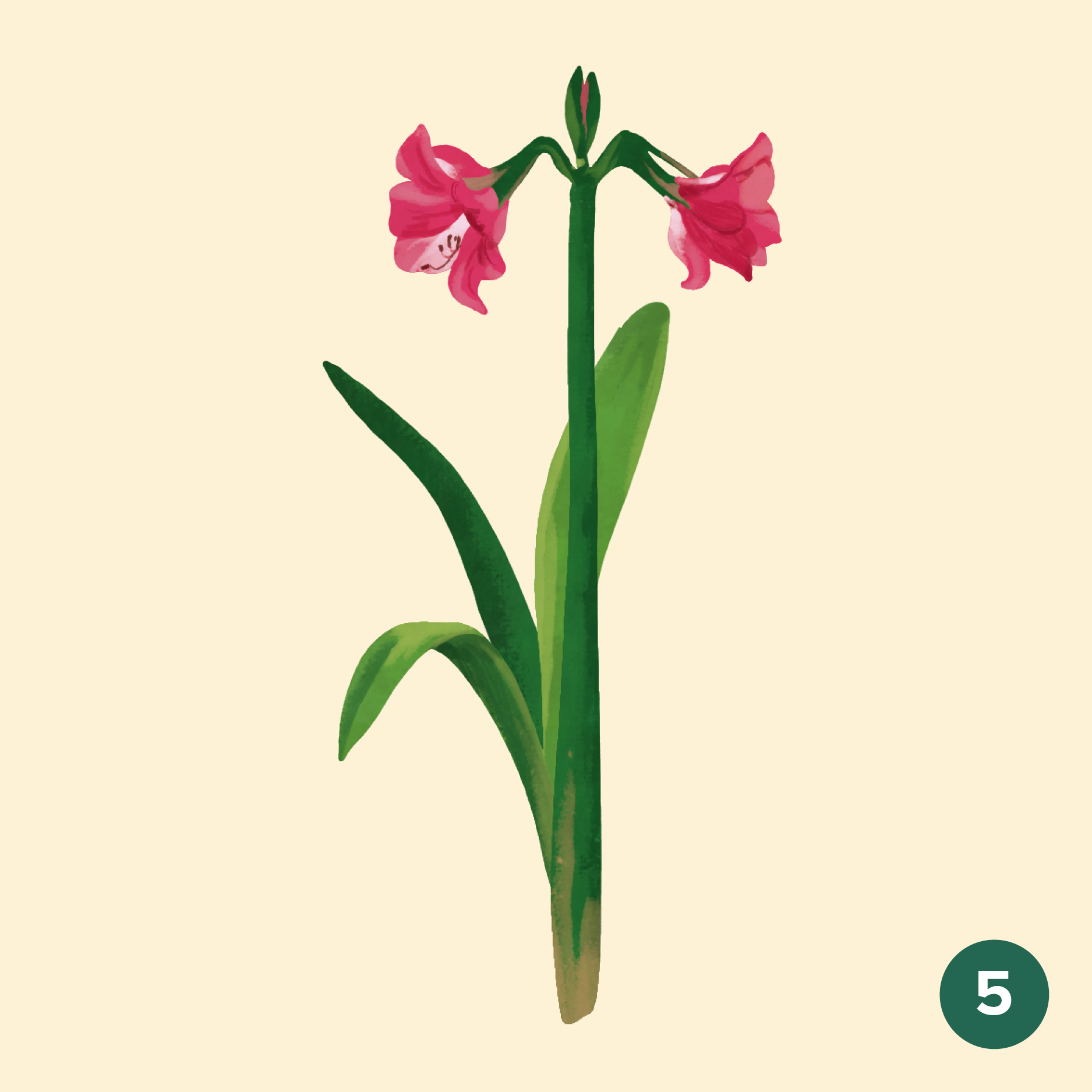 백합과의 아마릴리스는 고온다습한 환경에서 잘 자라는 다년생 구근으로 구근식물 중 키우기 쉬운 편에 속한다. 햇빛을 좋아하고 꽃이 피면 크고 화려하다. 봄, 가을에는 토양 표면이 말랐을 때만 충분히 물을 주고 여름에는 흙이 촉촉한 정도로만 물을 준다.