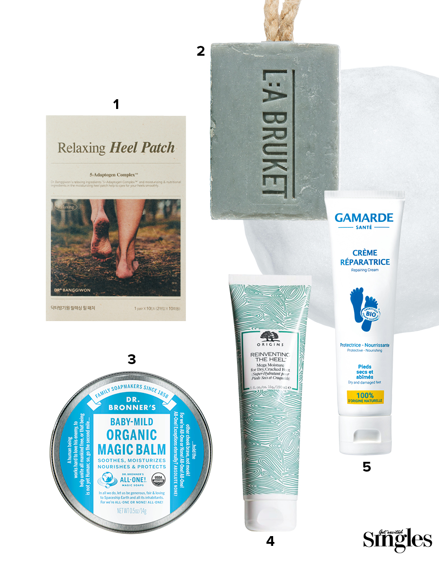 4 오리진스 리인벤팅 더 힐 메가 모이스춰 포 드라이 크랙드 피트 두껍게 자리 잡은 발뒤꿈치, 발등, 발가락의 거친 살을 제거하기 위해 살리실산을 담은 것이 특징. 로즈힙, 호호바 오일은 진정 효과와 함께 보습도 책임진다. 150ml 4만6000원.