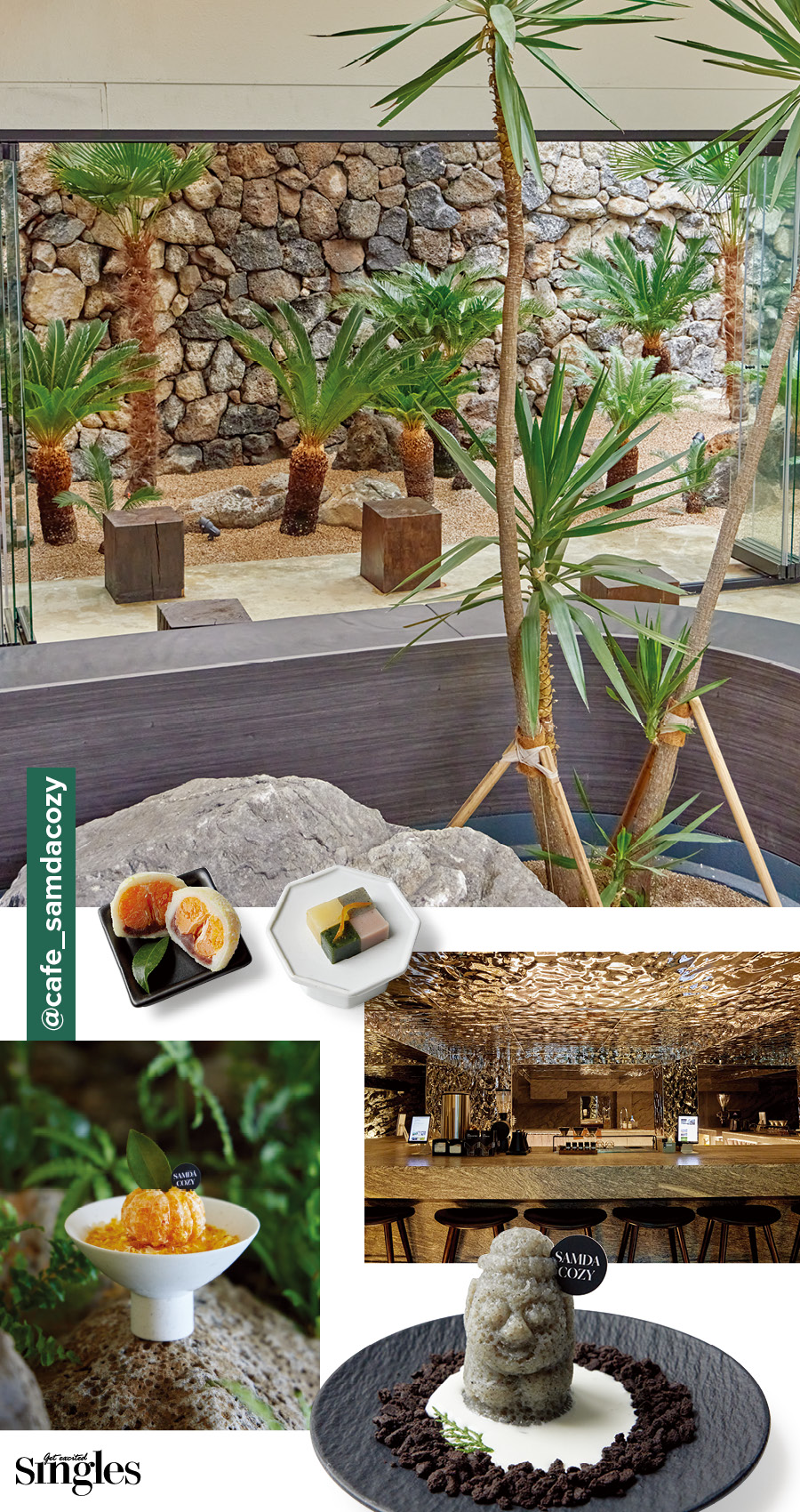 홍대에 새로 생긴 대형 카페 삼다코지는 제주 삼다수의 플래그십 스토어로 제주의 향취를 오롯이 느낄 수 있는 공간이다. 내부 곳곳을 장식하는 흙내음 머금은 이끼목과 달그락대는 화산석은 실제 제주에 온 듯한 느낌을 주고, 1층에 줄지어 들어선 야자수는 심지어 제주 한림공원에서 직접 공수한 것. 2층으로 올라가면 대형 돌하르방이 있는 포토존과 제주에서 직접 촬영한 바다, 숲길 등의 영상이 재생되는 공간이 나온다. 모든 곳이 인증샷 명소지만 그중에서도 가장 흥미로운 곳은 동굴 콘셉트의 에스프레소 바가 마련된 지하 1층이다. 사방에 달린 슈퍼 미러가 몽환적인 시각적 효과를 만들어내는 이곳에서는 전문 바리스타가 내려주는 핸드드립 커피를 맛볼 수 있다. 디저트도 특별하다. 흑임자와 우뭇가사리로 만든 돌하르방 양갱은 마치 실제 돌하르방을 축소해놓은 듯한 모습에 웃음이 번진다. 이곳에서는 5월을 맞아 제주의 여름을 오롯이 담은 새로운 메뉴를 출시할 예정이라고 하니, 제주 여행이 그리운 이들이라면 서둘러 방문하자.