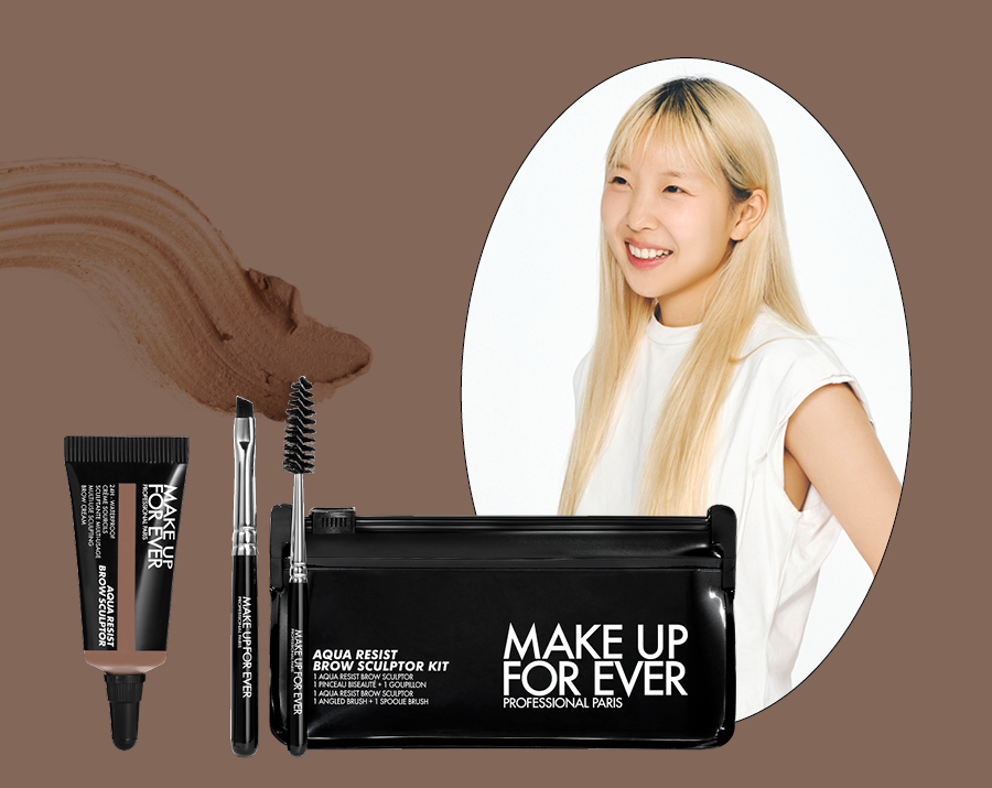 “기존 펜슬 타입의 아이브로와는 다르게 눈썹의 빈 부분을 깔끔하게 채울 수 있고 뭉침이 적다는 것이 장점이에요. 소량의 파우더로 눈썹 사이사이의 유분기를 잡고, 본인이 생각하는 것보다 더 적은 양의 크림을 덜어 눈썹 결 방향대로 쓸어줘요. 브로우가 픽스되기 전 스크루 브러시로 결 방향대로 빗어주면 끝. 강력한 워터프루프 기능으로 물놀이에도 끄떡없어요.” 이담은(메이크업 아티스트)