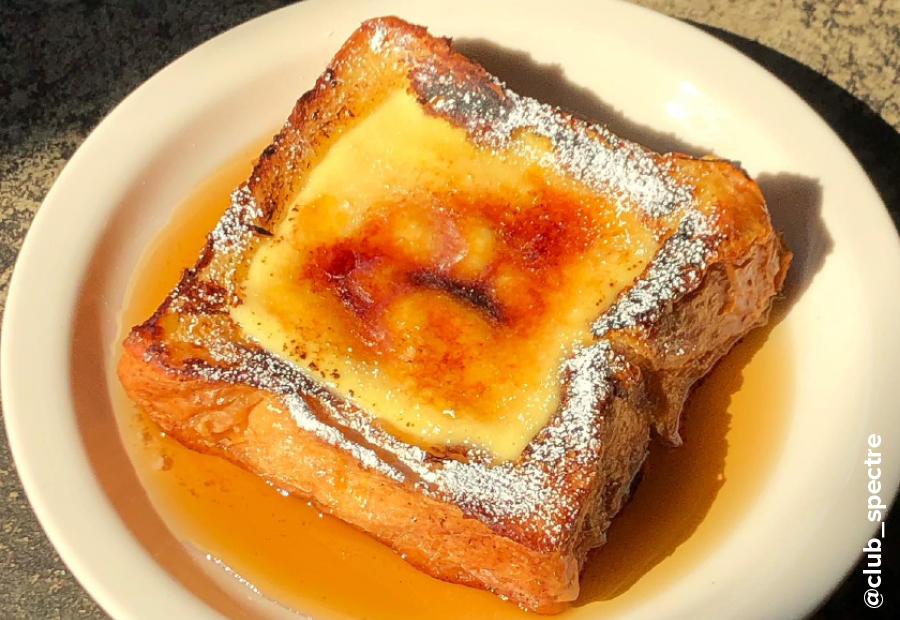 크림 브륄레와 프렌치토스트가 만난 맛없을 수가 없는 디저트를 서촌의 스펙터에서 만날 수 있다. 이즈니 버터의 풍미를 가득 담아 구워진 토스트에 커스터드 크림이 들어간 색다른 형태의 프렌치토스트. 눈앞에서 토치로 설탕을 태워주면 크림 브륄레의 바삭한 겉면이 만들어진다. 달콤 쌉쌀한 설탕 지붕을 깨면 그 속에는 부드러운 커스터드 크림이 나타나고 그 밑에는 메이플 시럽이 스며든 촉촉한 빵이 자리하고 있다. 식빵의 겉면은 크루아상의 식감으로 바삭하게 즐길 수 있다. 한없이 달달한 크림 브륄레 토스트와 쌉싸래한 커피의 환상의 조화를 스펙터에서 느껴보자! 크림 브륄레 커스터드 프렌치토스트 1만1000원.