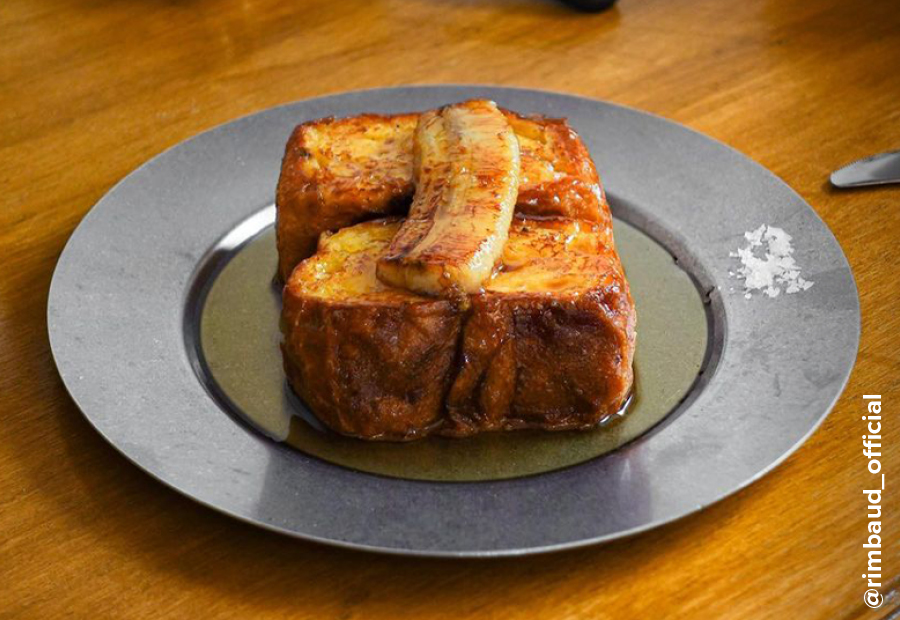 앞선 카페들과 달리 랭보의 프렌치토스트는 식빵이 아닌 바게트로 만들어졌다. 매일 한정 수량 판매된다는 이곳의 프렌치토스트는 르방바게트와 바나나를 구워 만들어졌는데, 두툼한 모습과는 달리 우유, 달걀이 빵 깊숙이까지 충분히 스며들어 질기지 않고 촉촉하면서도 부드럽다. 플레이트 한 편에 놓인 하얀 소금을 살짝 뿌려 함께 먹으면 토스트의 단맛을 돋우고 감칠맛을 자아낸다. 적당히 뿌려진 메이플 시럽과 익힌 바나나의 오묘한 단맛, 은은한 시나몬 향은 한데 어우러져 랭보 프렌치토스트만의 풍미를 이룬다. 바게트 프토를 경험해 보고 싶다면 랭보로 향해보는 것을 추천한다. 바나나 프렌치토스트 1만 원.
