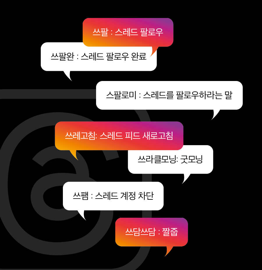 스레드 피드를 구경하다 보면 처음 보는 용어들이 등장해 당황할 수도 있다. 많이 사용하는 스레드 용어는 미리 숙지해 스레드 초보임을 드러내지 않도록 주의할 것.