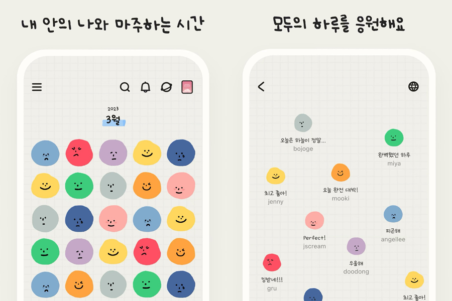 성장을 하려면 자신을 아는 것이 가장 중요하다. 이제 감정 스티커를 통해 몇 초 만에 일기를 작성하고 어떤 순간들이 당신을 행복하게 또는 우울하게 하는지 알아볼 차례다. 일기를 쓰고 나면 감정 이모티콘이 위로나 응원의 말을 건네준다는 점 때문에 많은 사람들에게 사랑받고 있다. 기록한 하루 동안의 기분과 경험 등이 일상 활동을 추적하는 데 도움이 될 것. 다양한 감정들이 쌓여서 더욱 성장한 모습을 확인할 수 있다.