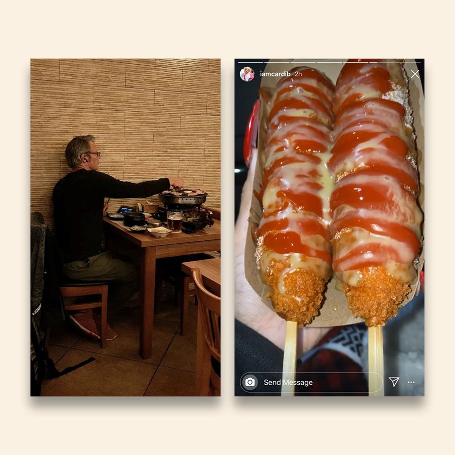 미국의 유명 래퍼 카디비의 인스타그램에서도 비슷한 모습을 확인할 수 있다. 명랑 핫도그에서 시작해 소떡소떡, 닭발, 김치, 떡볶이, 컵라면, 붕어빵까지 즐기는 그녀는 이미 한식 만렙의 경지. 매번 새로운 한식에 도전하며 심지어는 직접 요리까지 한다. 미국에서 가장 핫하다고 해도 과언이 아닌 래퍼가 집에서 계란장을 만들고 레시피를 공유하는 모습, 이전엔 누가 예상이나 했을까?