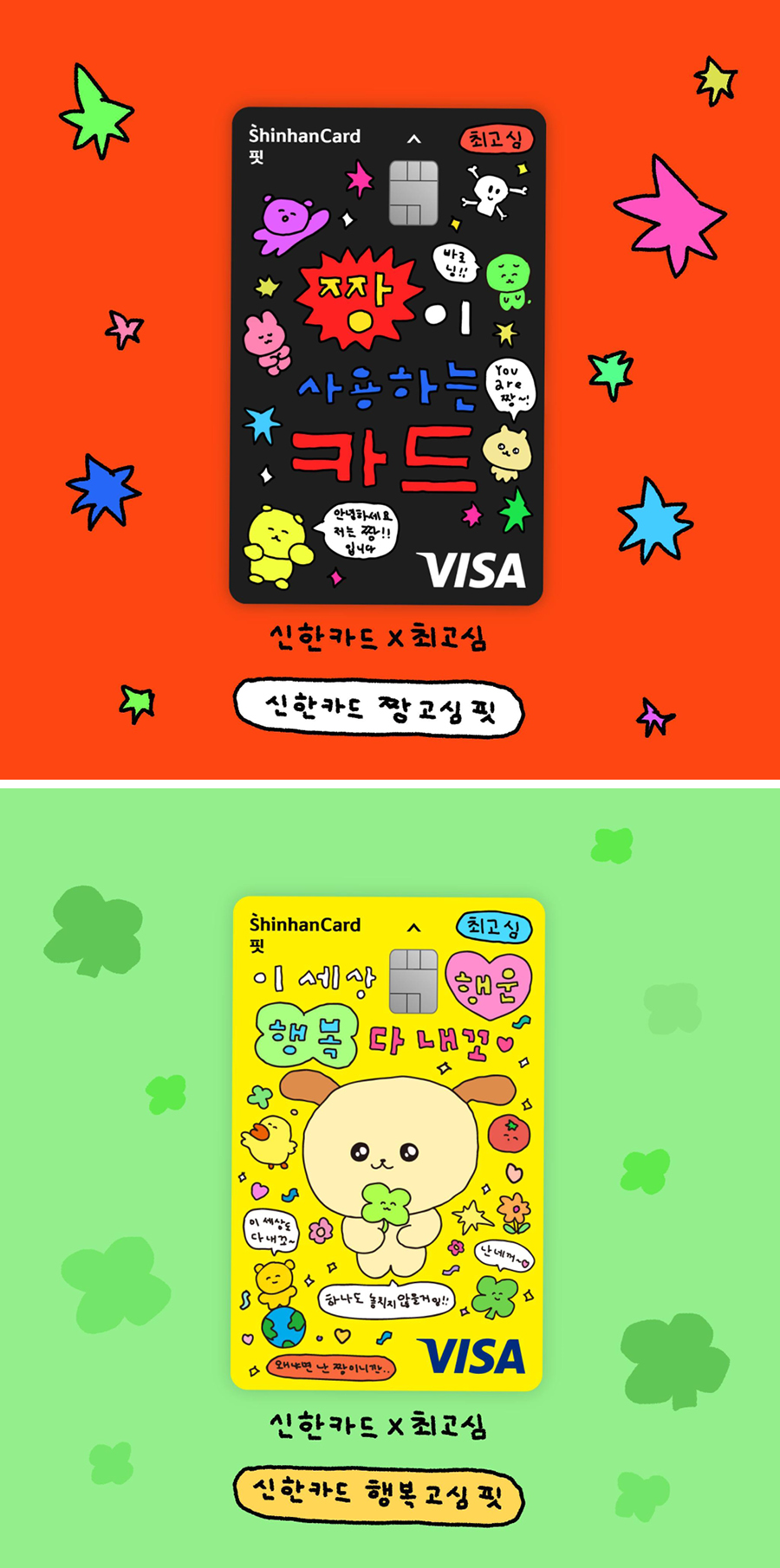 일러스트레이터 ‘최고심’과 협업을 통해 출시한 ‘최고심 체크카드’ 역시 폭발적인 반응이었다. 행복한 소비를 통해 갓생을 살고 싶은 2030세대의 마음을 담은 디자인이다. 투박한 그림체와 재치스러운 멘트가 유명한 최고심 캐릭터가 카드 디자인이 된다는 것은 어쩌면 도전적일 수도 있었지만 결과는 성공적. 특유의 컬러풀한 색감도 한몫했으며 카드 속 엉성한 글씨체가 주는 문구가 어딘지 모르게 위로가 된다. 이런 매력이 사람들을 끌어들인 것 아닐까?