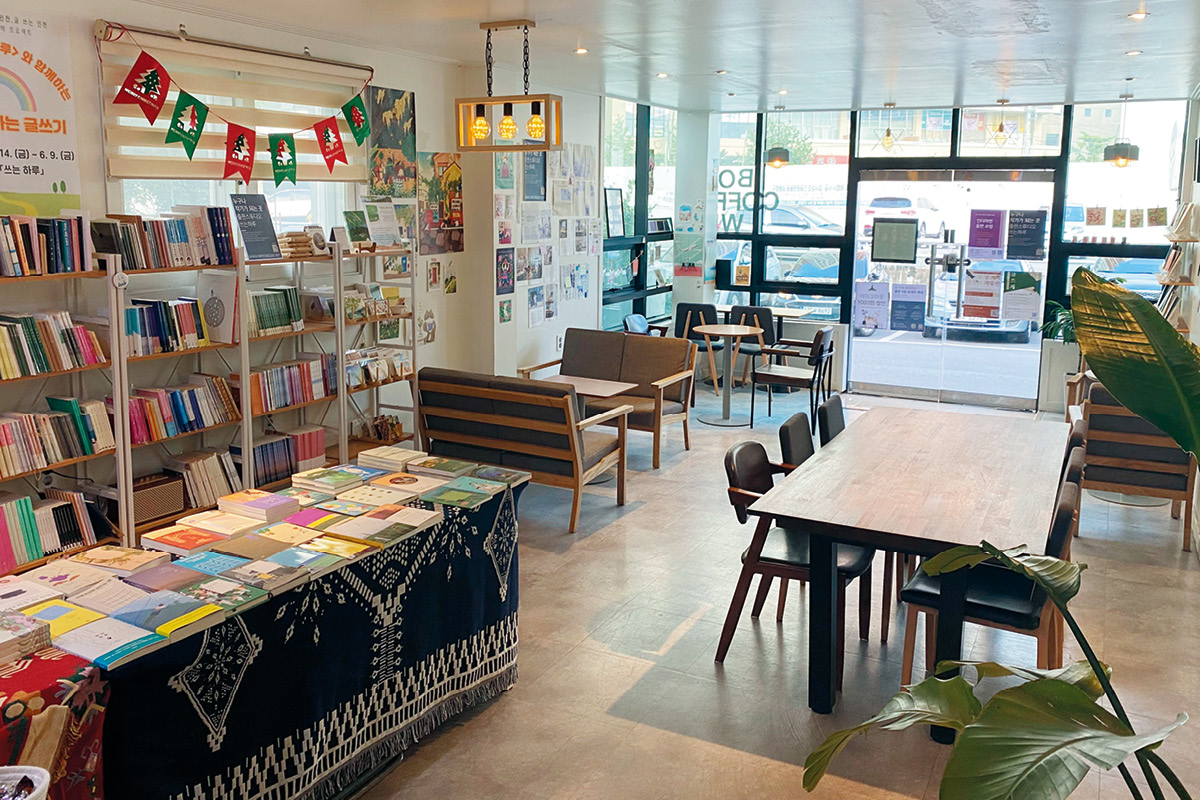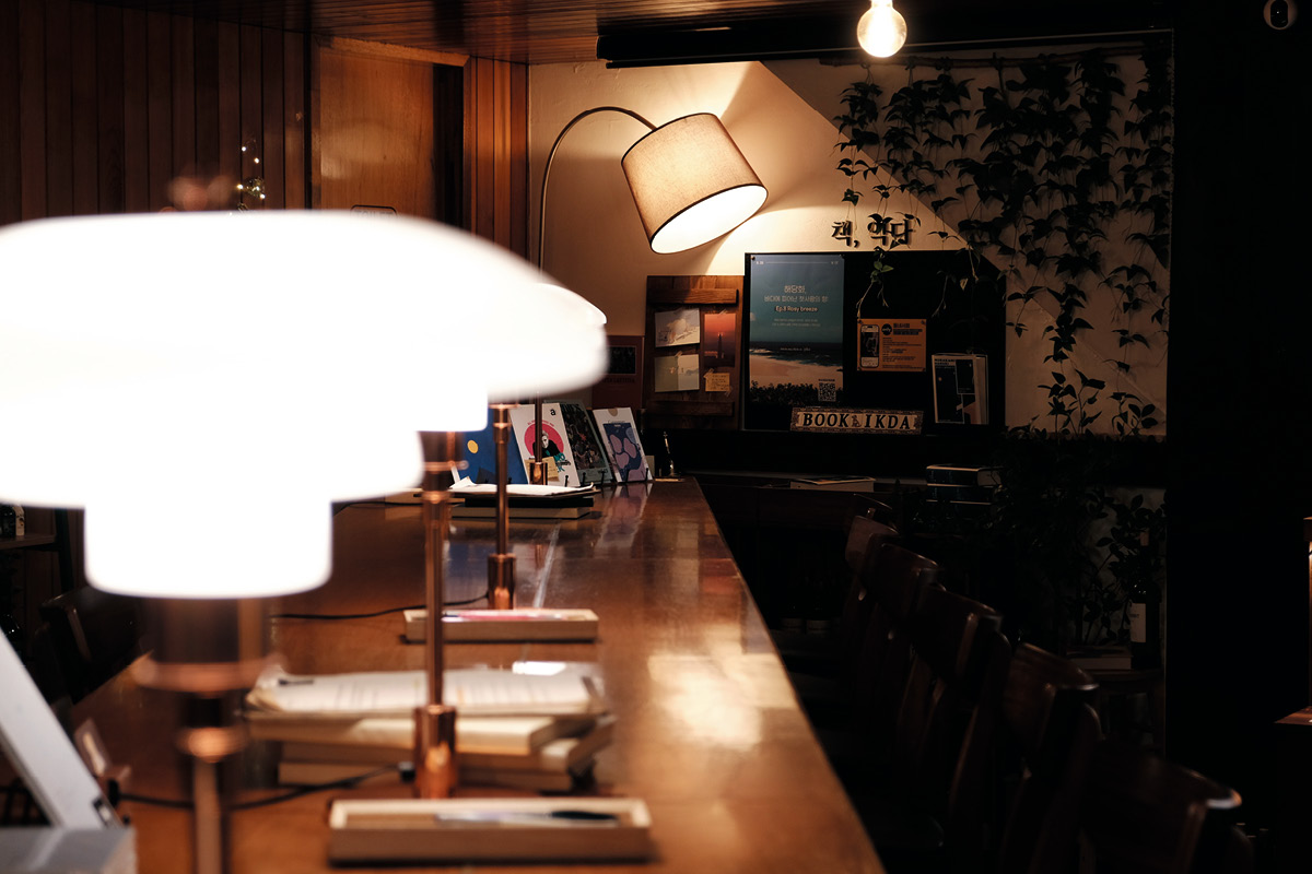 긴 바 좌석과 중앙의 커다란 테이블 덕분에 혼자 와도 어색하지 않게 공부, 독서 등에 몰두할 수 있다. 공간 내부의 조도는 어두운 편이나 테이블마다 램프가 설치돼 오히려 집중력을 높여준다. 간단한 주류를 판매해 책을 읽으며 술 한 잔 마시기 좋으며 독립서적도 판매한다.