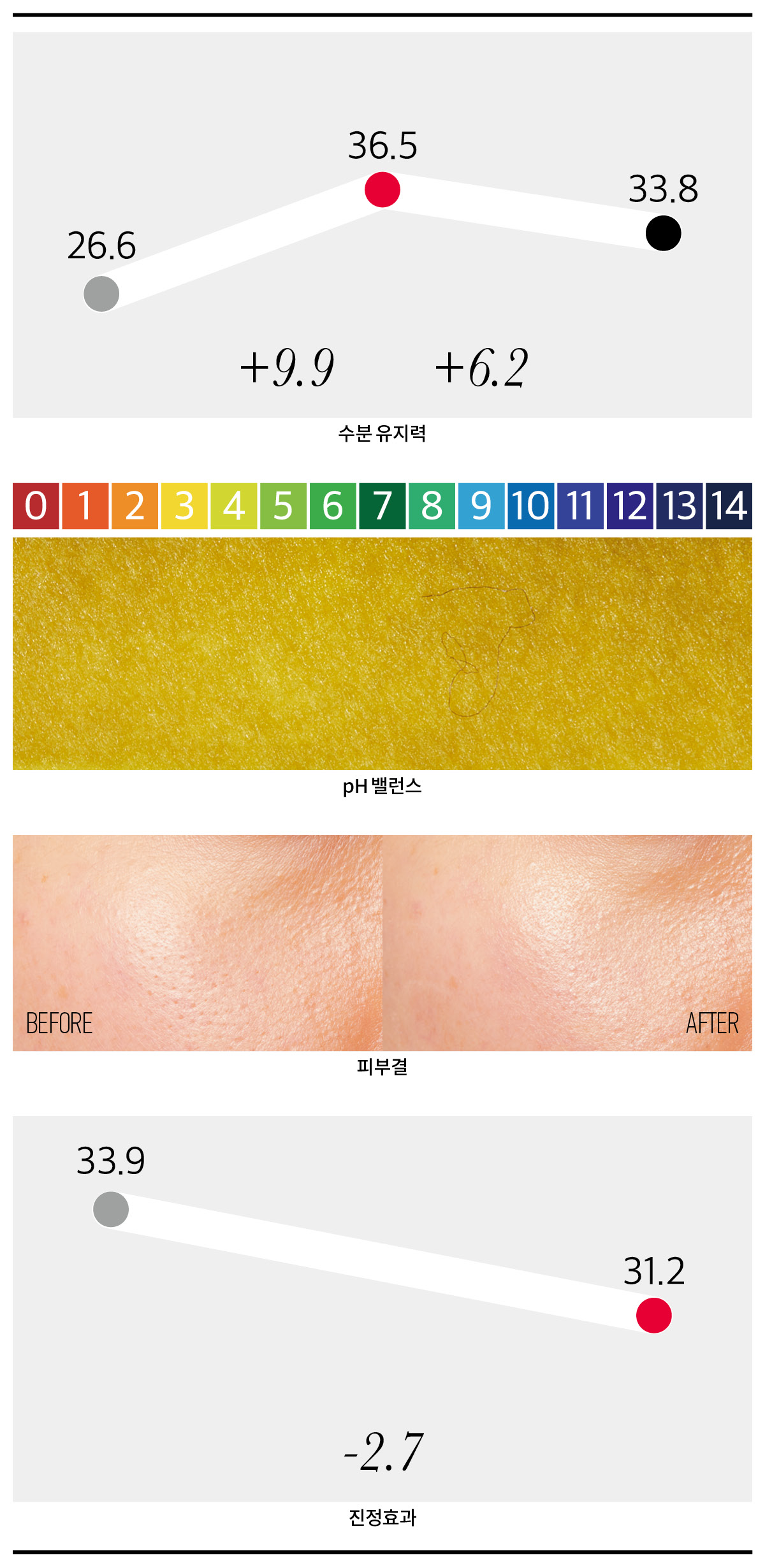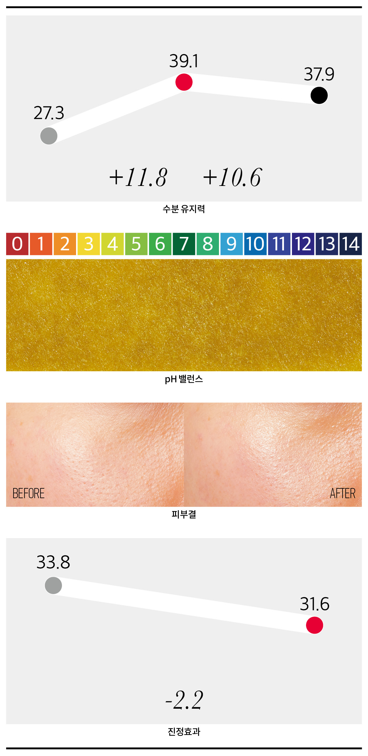 실험 방법 제품 사용 전후 피부결을 비교해 개선 효과를 확인했다.