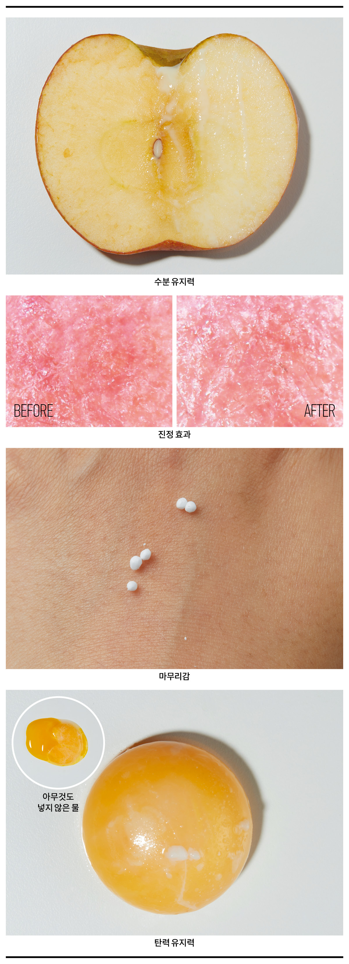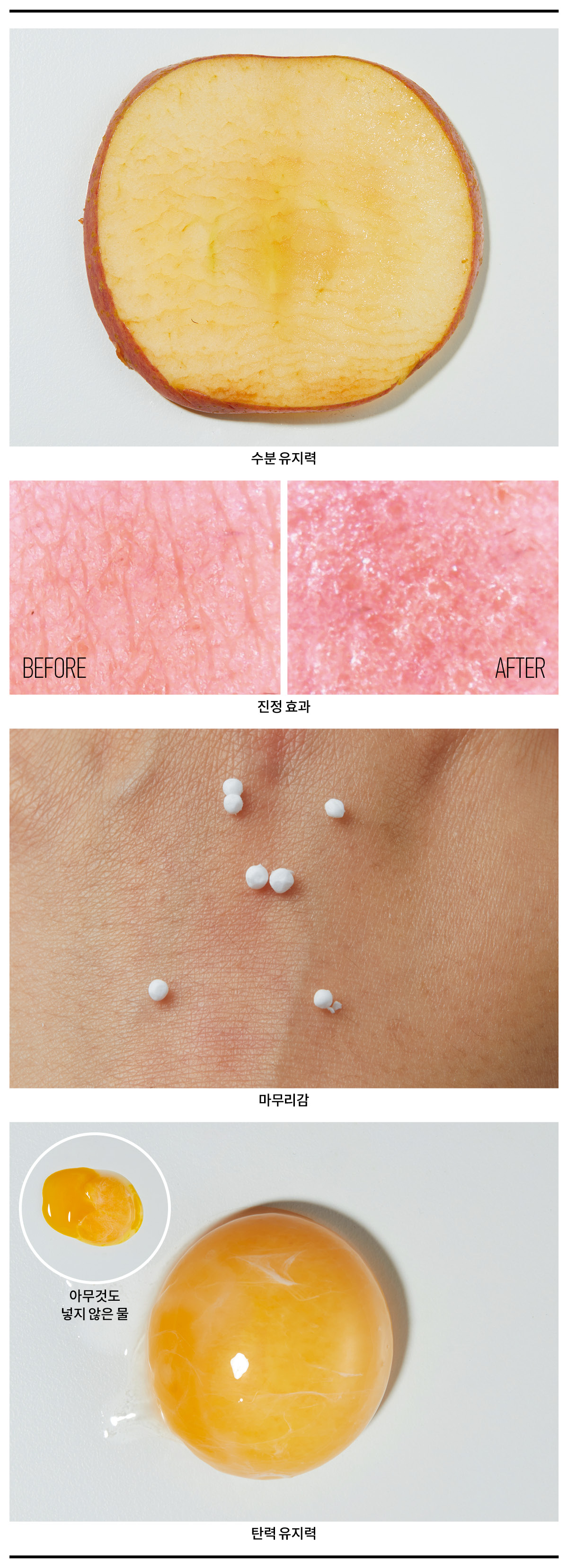 실험 방법 사과 단면에 제품을 바르고 6시간 후 바른 쪽과 바르지 않은 면을 비교했다.