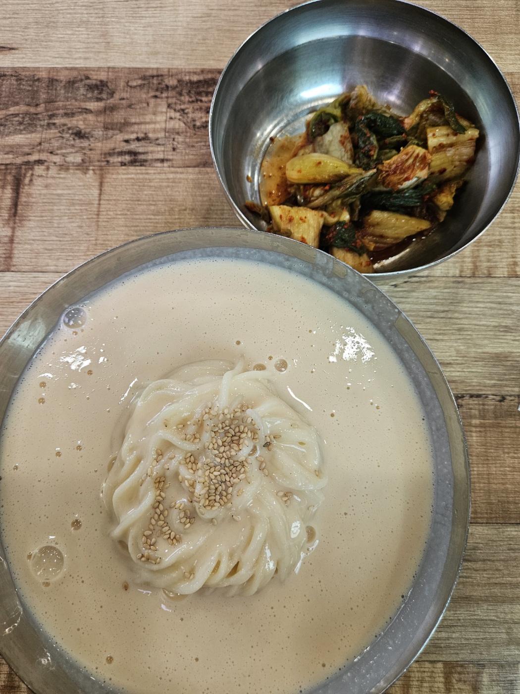 계절음식으로 3개월 한정으로 콩국수를 판매하는 가게가 아닌 1년 내내 콩국수를 판매하는 ‘콩국수 외길 인생’ 콩국수 맛집. 완콩(완 콩국수)을 하고나면 내가 콩국수를 먹었는지, 인절미를 먹었는지 헷갈릴 만큼 뒷맛이 달큰한 게 특징이다. 함께 나오는 김치는 단맛이 없고 맵고 조금은 짠 느낌까지 들지만 콩국수의 달달한 맛과 어울린다. 사실 콩국수는 여름보단 해콩이 나오는 12월에 더 맛있는 콩국수를 맛볼 수 있으니 계절 관계 없이 맛있는 콩국수를 먹고 싶다면 12월에 대전을 방문해 보는 것을 추천한다.