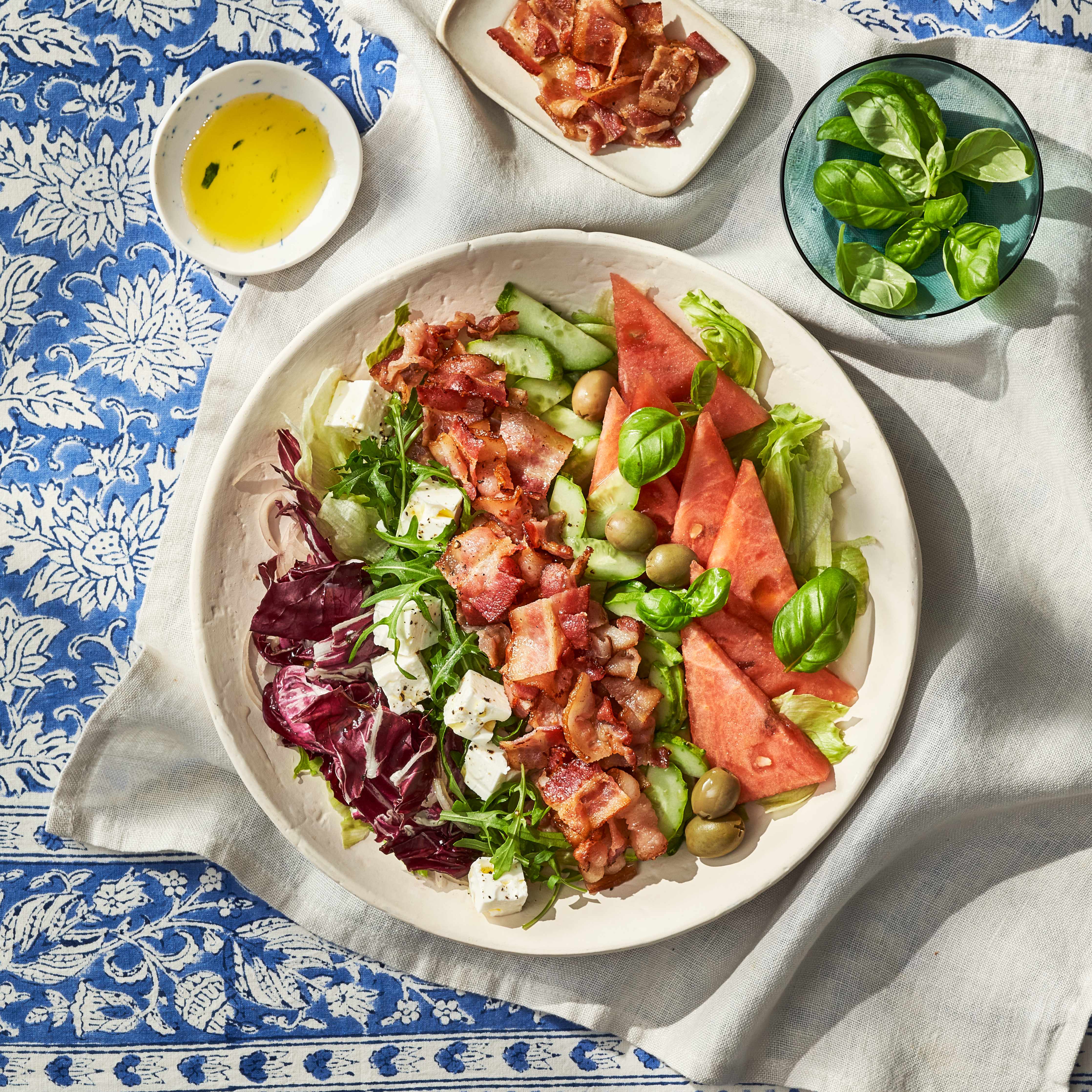 산뜻한 날씨처럼 청량한 한 끼로는 이색 조합의 베이컨 수박 샐러드가 제격이다.